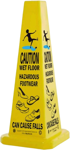 Disclaimer: This Footwear Defense System should be utilized in conjunction with proactively removing hazards, performing regular sweeps and inspections. It is recommended that 4 sided cones be utilized to warn patrons approaching from all directions. In addition, it is recommended that caution stickers be placed on entrance doors and cones strategically placed in high hazard areas to warn patrons of potential and known hazards.